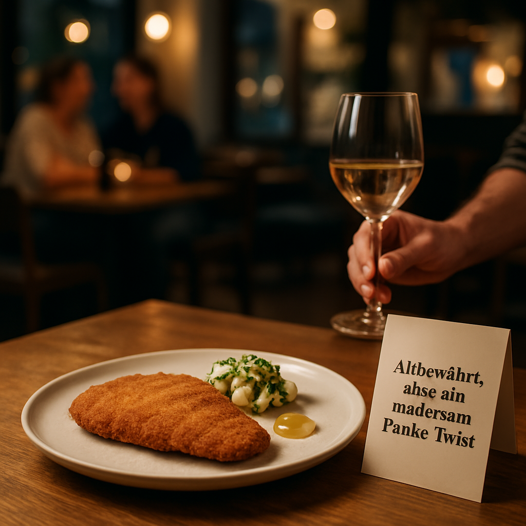 Stell Dir vor, neben einer modernen Interpretation des Wiener Schnitzels steht: „Altbewährt, jetzt mit modernem Panko-Twist — für Nostalgiker mit Abenteuerlust.“ Oder neben einem Apfelstrudel: „Alles da, was glücklich macht — nur schneller und mit mehr Crunch.“ Solche Zeilen setzen Erwartungen, machen neugierig und geben dem Service etwas, worüber er flapsig plaudern kann.